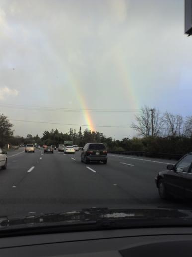 | Rainbow, seeming to end at Stanford University Medical Center, the morning after Meaghan's Transplant, February 26th, 2007 |